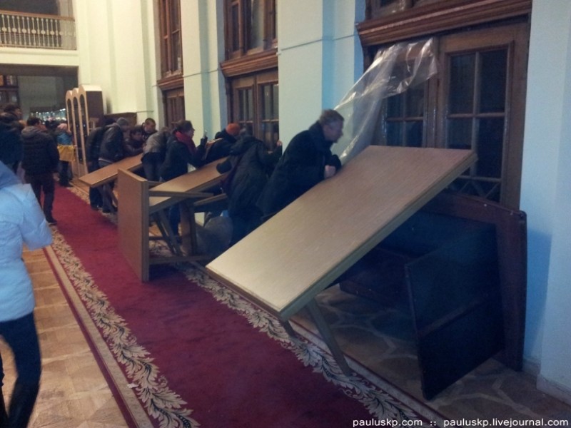 Вернее, не захваченный, а возвращенный. Нет никакого захвата административных зданий. Есть освобождение принадлежащих народу зданий от банды уголовников. Собственник возвращает свое. Буду по частям выкладывать фото и рассказывать об увиденном. В гор
