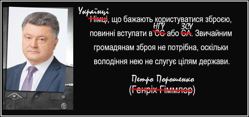 Все думал как лучше написать о заявлении Порошенко , что оружие гражданам Украины не нужно. Но кто-то сделал картинку, которая сразу расставляет все по своим местам. Сначала цитата По: - Безусловно, я не поддерживаю тех, кто хочет ходить по улице с